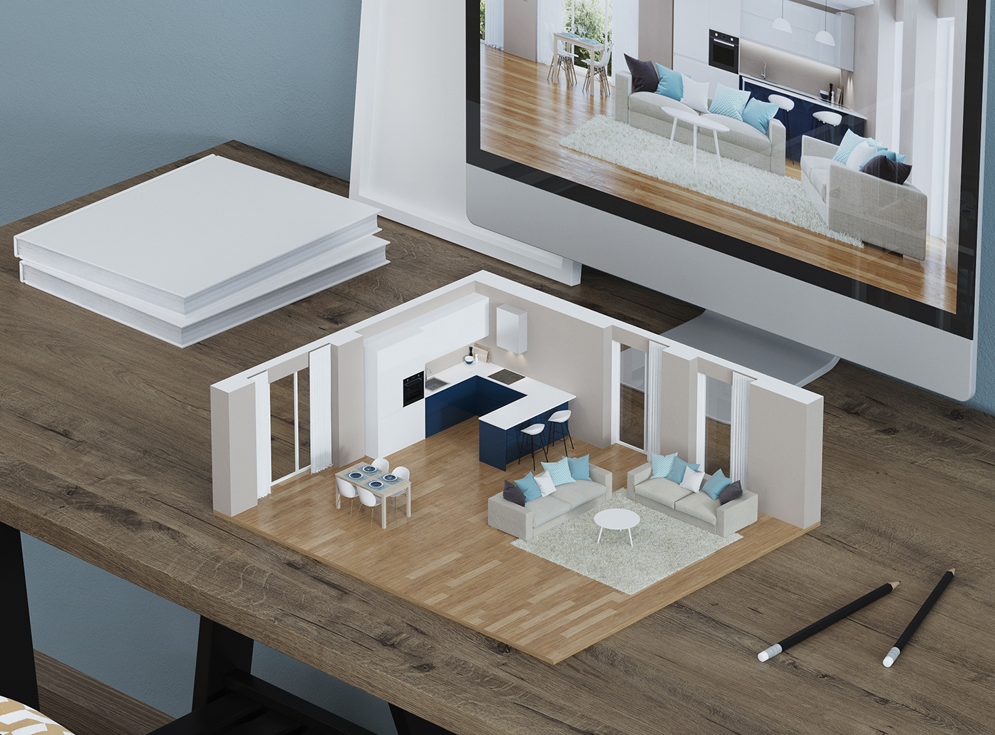 Renders internos hiper-realistas de apartamentos, casas, áreas comuns, lobbies e espaços comerciais. Cada ambiente é cuidadosamente iluminado e decorado para transmitir lifestyle e despertar desejo.